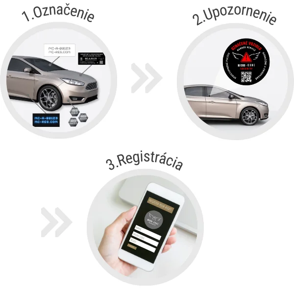 Prvým krokom je nanesenie bezpečnostného značenia, druhým krokom je upozornenie na toto bezpečnostné značenie. Tretím krokom je registrácia jedinečného identifikačného kódu bezpečnostného značenia, aby ho polícia mohla skontrolovať.