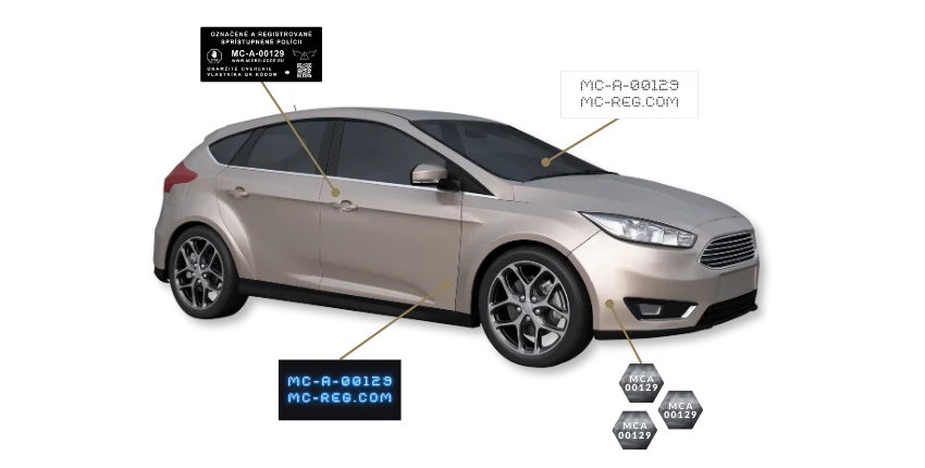 Mikrobodky sú kovové doštičky veľkosti zrnka piesku, ktoré obsahujú jedinečný identifikačný kód. Označovanie leptaním je technológia chemického leptania. Odstraňovanie deštruktívnych nálepiek poškodzuje lak a tým vzbudí podozrenie.