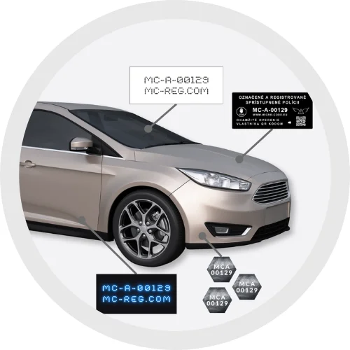 70 % odcudzených vozidiel sa predáva na súčiastky. Bezpečnostným značením (jedinečným identifikačným kódom) je možné účinne a lacno ochrániť naše vozidlo.