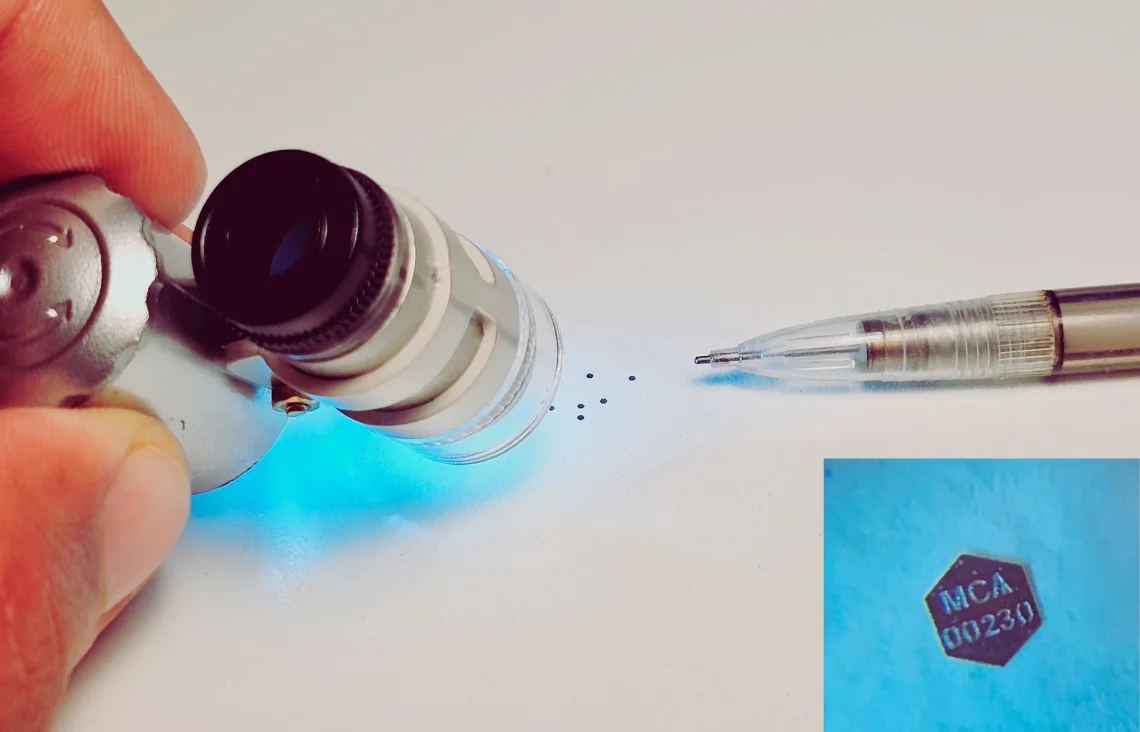 Bezpečnostný systém MICRO-CODE poskytuje vozidlám skryté identifikačné značky, ktoré umožňujú polícii identifikovať vozidlá vrátane označených častí.